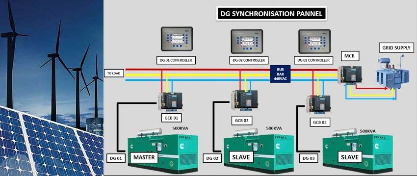 We design a grid-tie diesel generator Synchronising system (often part of a hybrid energy setup) combines a diesel generator with the utility grid to ensure power stability, reduce fuel costs, and manage peak demand.